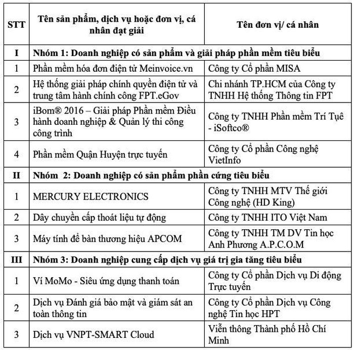 Các doanh nghiệp, cá nhân được Giải thưởng CNTT-TT TP.HCM 2018.
