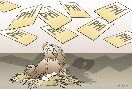 Theo phản ánh, một con gà đang phải “cõng” 14 loại phí, lệ phí. Hiện phí, lệ phí kiểm dịch trên gia cầm còn khá nhiều, đôi lúc trùng lặp làm tăng chi phí sản xuất và lưu thông, đẩy giá bán sản phẩm khi đến tay người tiêu dùng. Ngoài ra, một quả trứng, con gà do nhiều bộ quản nên dẫn tới tình trạng phí chồng phí đè nặng lên vai người nông dân.