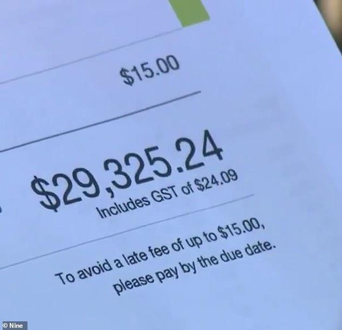 Hóa đơn có giá trị hơn 29.000 đô-la Úc, tương ứng với hơn 20.000 USD. Ảnh: Nine.