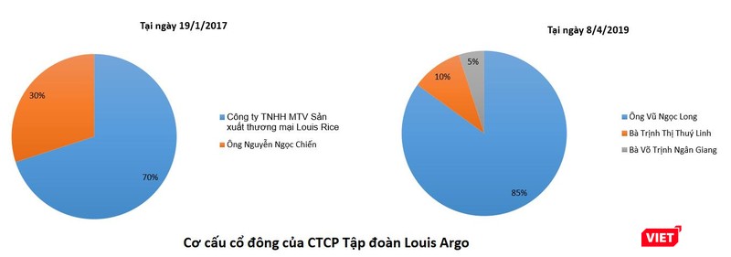 Tới tháng 4/2019, vợ chồng ông Vũ Ngọc Long – bà Trịnh Thị Thuý Linh nắm giữ tới 95% vốn điều lệ của Louis Argo.