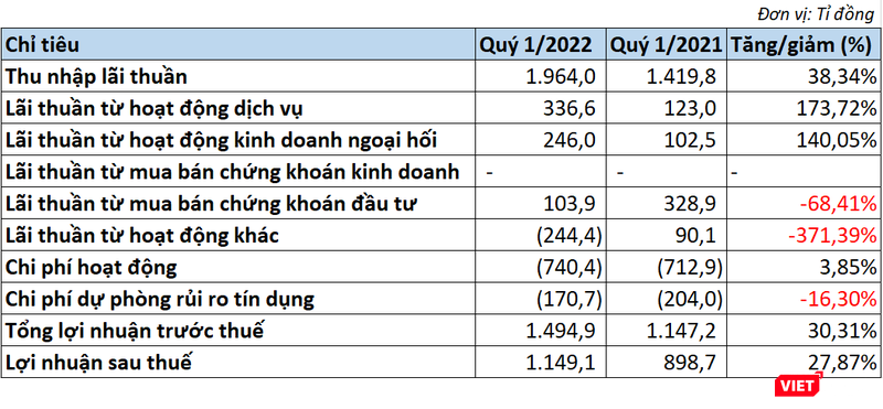 Lũy kế 3 tháng đầu năm 2022, tổng thu nhập hoạt động (TOI) của MSB đạt 2.406 tỉ đồng, tăng 16,5% so với cùng kỳ năm trước.