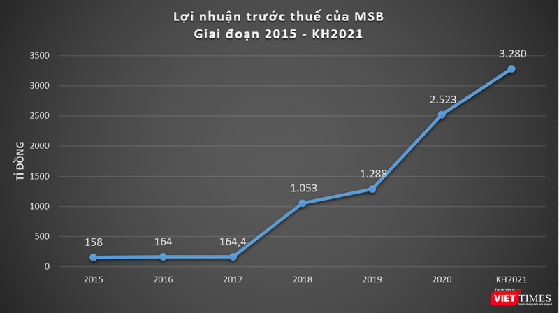 Về kết quả kinh doanh, năm 2020, MSB ghi nhận lợi nhuận trước thuế đạt 2.523 tỉ đồng, tăng gần 96% so với năm 2019 và vượt 75% kế hoạch cả năm.