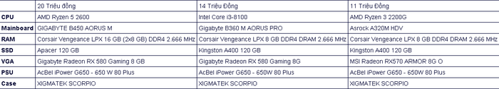 PC tầm giá từ 10 đến 20 triệu đồng, em sẽ có rất nhiều lựa chọn tốt, có thể kể đến 3 cấu hình dưới đây.