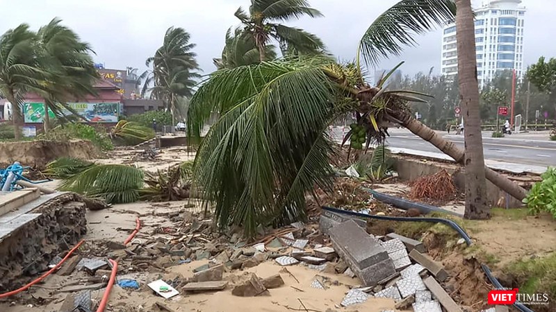 Rừng dừa ven biển du lịch khu vực quận Ngũ Hành Sơn bị nước cuốn trốc gốc |