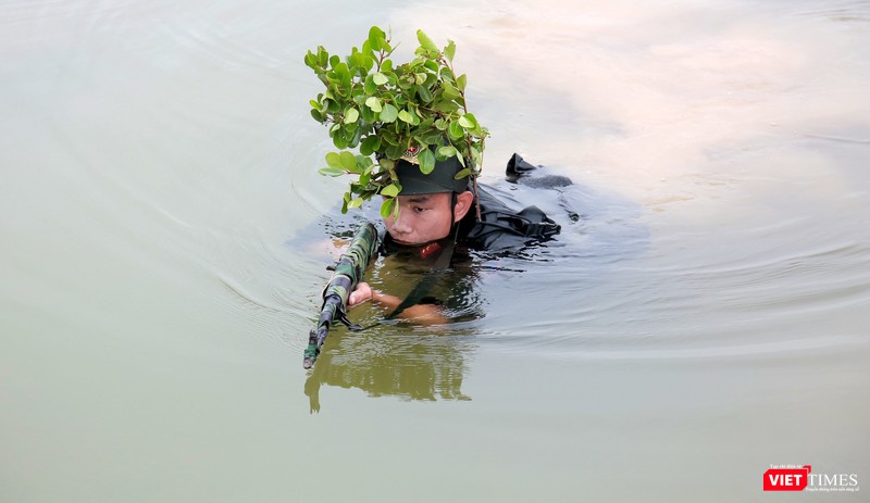 Các chiến sĩ miệt mài luyện tập, không quản ngâm mình trong nước lạnh. |