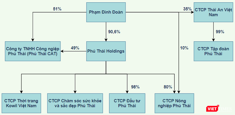 Như vậy, thông qua Đoàn kết Việt Nam, đại gia Phạm Đình Đoàn đã gián tiếp sở hữu tới 90,6% cổ phần tại Phú Thái Holdings.