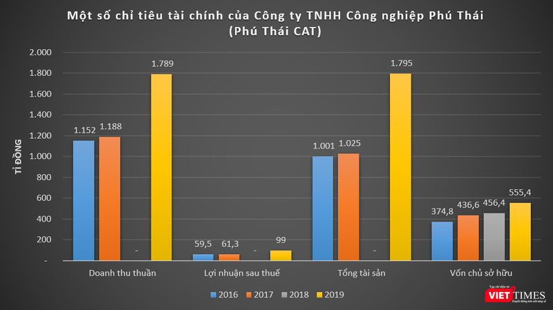 Như năm 2016 và 2017, doanh thu thuần của Phú Thái CAT đạt lần lượt 1.152 tỉ và 1.188 tỉ đồng, lãi sau thuế ở mức 59,5 tỉ đồng và 61,3 tỉ đồng. Năm 2019, 2 chỉ tiêu này lần lượt là 1.789 tỉ đồng và 99 tỉ đồng.