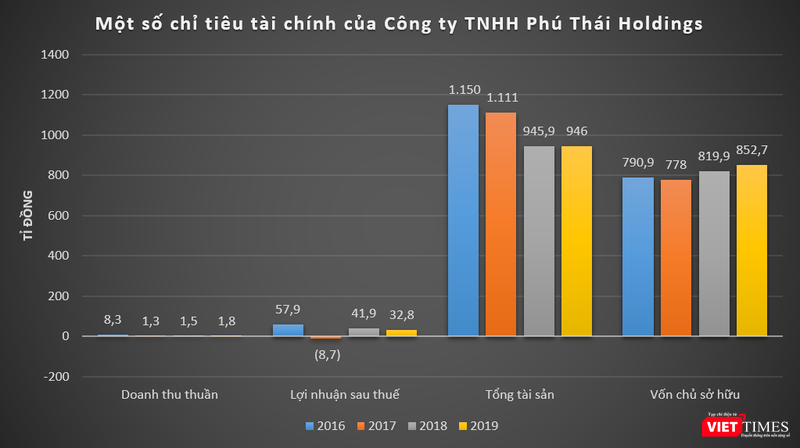 Dữ liệu của VietTimes cho thấy, trong giai đoạn 2016 - 2019, Phú Thái Group ghi nhận doanh thu từ 630 - 880 tỉ đồng mỗi năm, lãi sau thuế cao nhất vào năm 2016 với 24,1 tỉ đồng. Gần nhất là năm 2019, công ty này ghi nhận doanh thu thuần đạt 630 tỉ đồng, báo lỗ sau thuế ở mức 2,4 tỉ đồng.