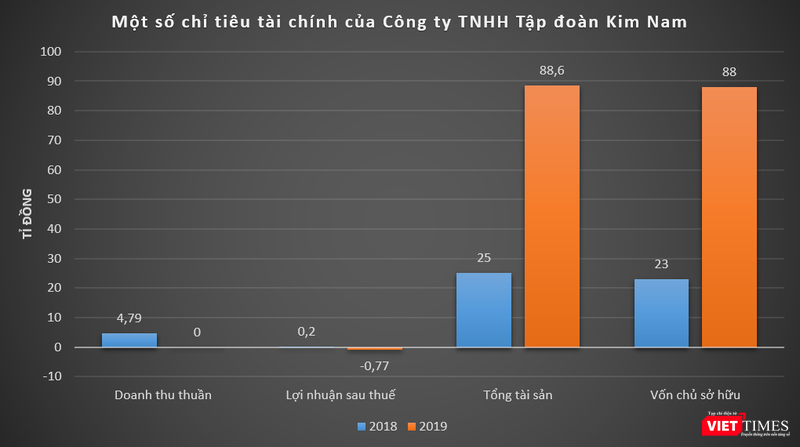 Tại ngày 31/12/2019, quy mô tổng tài sản của Kim Nam Group đạt 88,6 tỉ đồng, vốn chủ sở hữu ở mức 88,1 tỉ đồng.