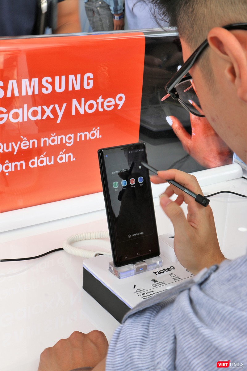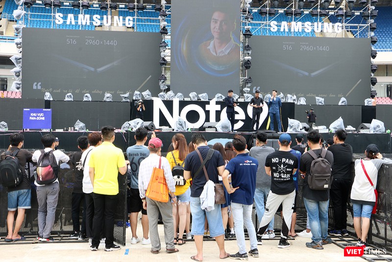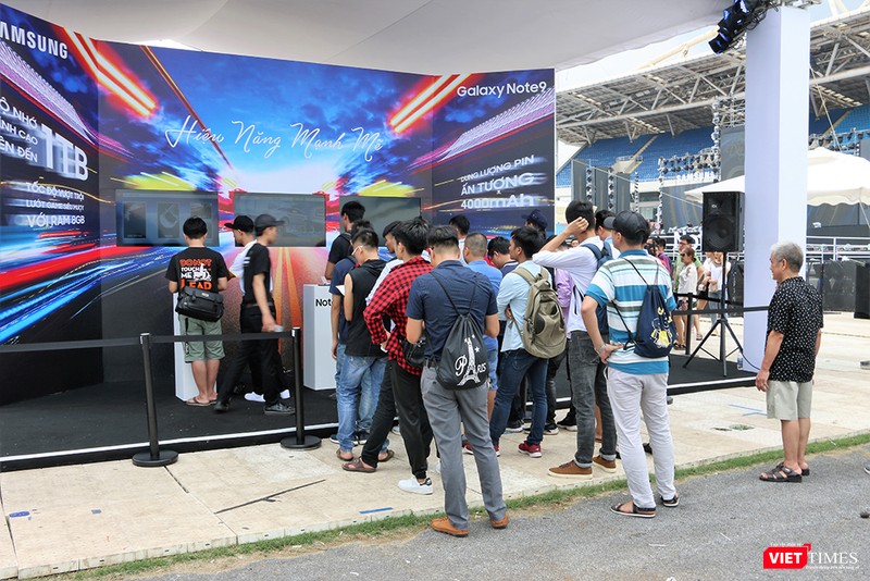 Trước đó, vào buổi sáng và chiều cùng ngày (18/8), cũng tại sân vận động Quốc gia Mỹ Đình, Samsung đã dựng 5 khu trải nghiệm để những người yêu công nghệ có dịp "vọc" thử flagship mới nhất của hãng. Những tính năng nổi bật của Galaxy Note 9 là bút Spen với khả năng chụp ảnh, điều khiển trình chơi nhạc từ xa.