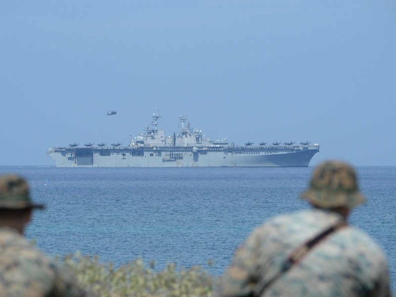 Trước đó, Hãng Bloomberg ngày 10.4 đưa tin chiếc tàu sân bay USS Wasp của Mỹ đã xuất hiện ở gần bãi cạn Scaborough (Trung Quốc gọi là đảo Hoàng Nham) – nơi đang xảy ra tranh chấp về lãnh thổ giữa Trung Quốc và Philippines; việc này được coi là một tín hiệu mạnh mẽ của Mỹ và Philippines gửi tới Trung Quốc.