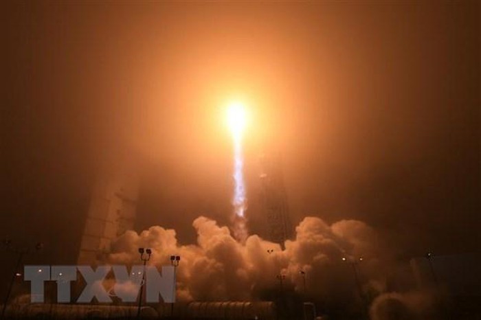 Tên lửa đẩy mang theo tàu vũ trụ rời bệ phóng ở căn cứ không quân Vandenberg, bang California, Mỹ ngày 5/5/2018. (Ảnh: AFP/TTXVN)