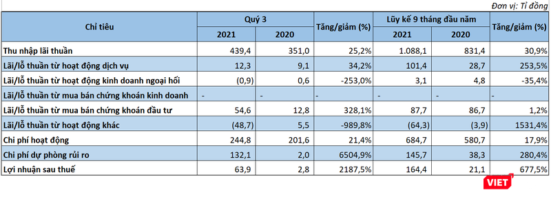 Ngân hàng TMCP Quốc Dân (NCB - Mã CK: NVB) vừa công bố báo cáo tài chính hợp nhất quý 3/2021 với tổng thu nhập hoạt động trong kỳ đạt 456,7 tỉ đồng, tăng 20,5% so với cùng kỳ năm trước.