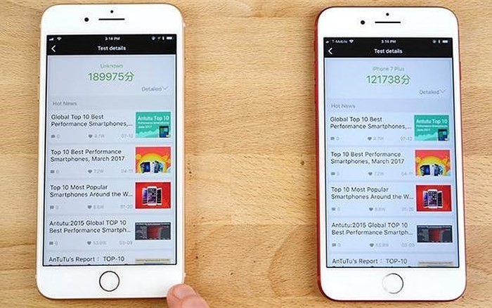 Nhìn mặt trước, hầu như không thể phân biệt được đâu là iPhone 8 Plus, đâu là iPhone 7 Plus