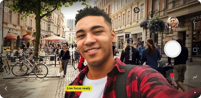 Nhờ camera kép mà chỉ có Galaxy A8 có tính năng Live Focus để thay đổi độ mờ của nền trước hoặc sau khi chụp cũng như chụp ảnh selfie nhóm với góc rộng hơn nhiều so với người anh em Galaxy A6 2018.