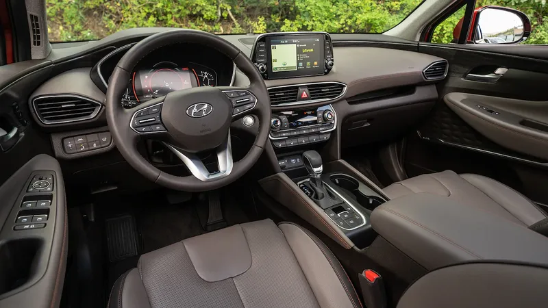 Nội thất của Santa Fe 2019 được thiết kế tuyệt vời. Chất lượng vật liệu, đặc biệt là nhựa được coi một bước tiến lớn ngay cả với phiên bản tiêu chuẩn. Các phiên bản cao cấp hơn sẽ có nhiều hơn những bề mặt nhựa mềm.
