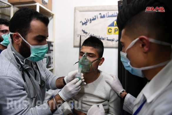 Nạn nhân trúng độc hóa học ở Aleppo. Ảnh Rusvesna