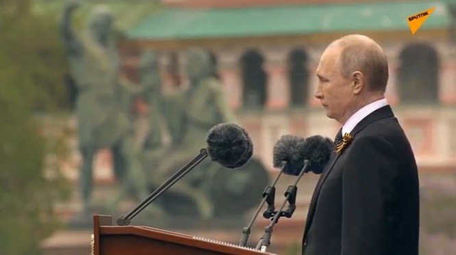 Đúng 10h theo giờ Matxcơva (tức 14h giờ Hà Nội), chuông đồng hồ trên Quảng trường Đỏ ngân vang, lễ duyệt binh 74 năm ngày chiến thắng phát xít bắt đầu. Sau nghi thức duyệt đội hình duyệt binh của Bộ trưởng Quốc phòng Shoigu, Tổng thống Nga Vladimir Putin tiếp nối sự kiện với bài phát biểu ca ngợi cuộc chiến vệ quốc vĩ đại.