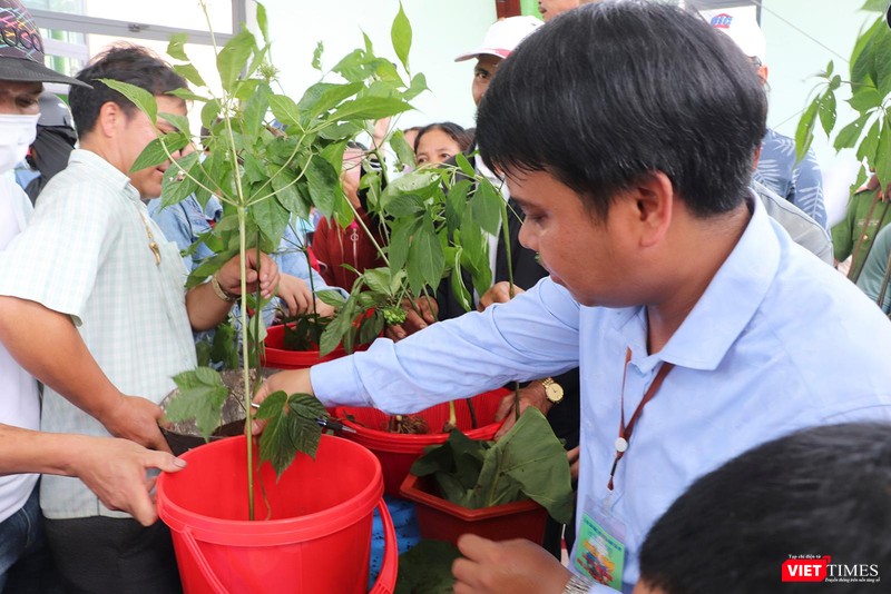 Ông Đinh Hồng Thắng (37 tuổi, người dân xã Trà Linh, huyện Nam Trà My, tỉnh Quảng Nam) đem cây sâm Ngọc Linh 20 năm tuổi đến hội chợ