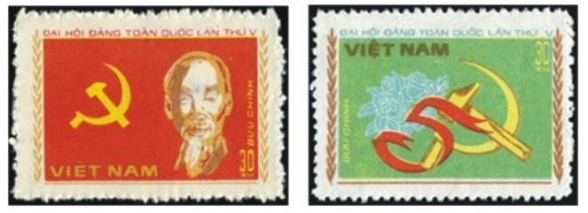 Bộ tem đặc biệt “Đại hội Đảng Cộng sản Việt Nam lần thứ V", gồm 2 bộ, được phát hành vào ngày 15/02/1982 và 27/02/1982. |
