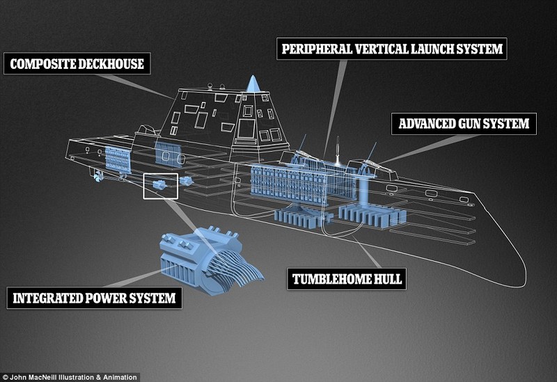 Chi phí đóng chiến hạm khổng lồ này lên tới 4,4 tỷ USD. Việc thử nghiệm sẽ kéo dài mấy tháng. Dự kiến, USS Zumwalt sẽ được bàn giao cho Hải quân Mỹ vào năm 2016.