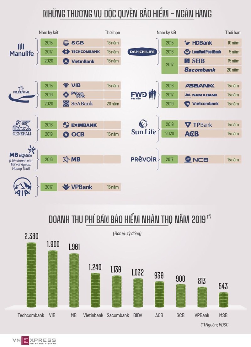 Các hãng bảo hiểm nhân thọ hiện đã có mặt với vai trò độc quyền phân phối tới hàng chục năm ở hầu hết ngân hàng lớn của Việt Nam.