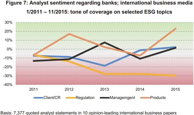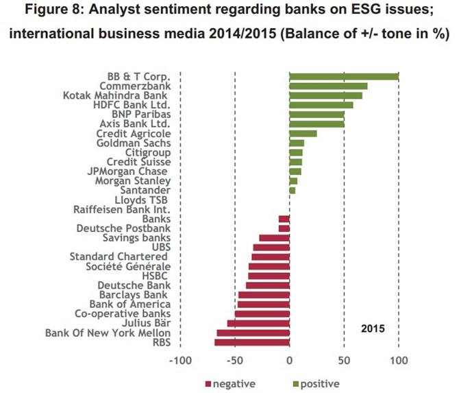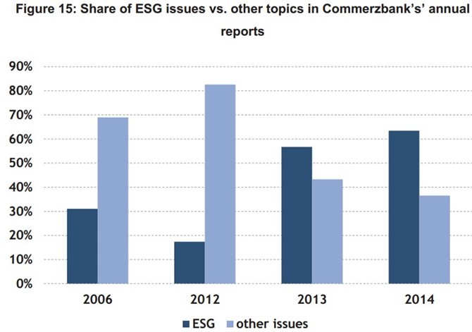 Do đó, Commerzbank nổi lên như một trường hợp đáng chú ý. Ngân hàng đã tăng tỷ lệ đề cập tới CSR lên đến 64% trong báo cáo thường niên năm 2014.
