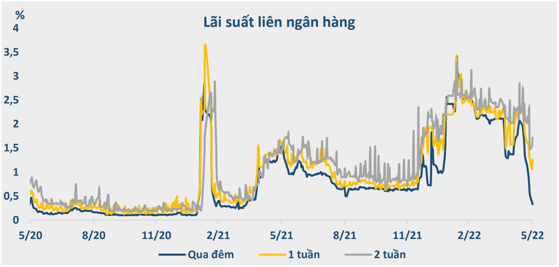 “Diễn biến này đã khiến cho lãi suất suất trên thị trường liên ngân hàng có diễn biến giảm mạnh, lãi suất liên ngân hàng kỳ hạn qua đêm đã giảm xuống mức thấp nhất kể từ tháng 4/2021 tới nay”, BVSC cho hay.