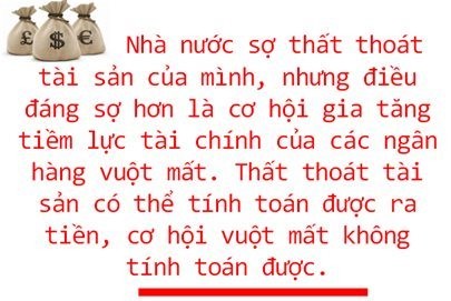 Mỗi năm, nguồn thu cổ tức từ các ngân hàng của ngân sách lên tới hàng ngàn tỉ đồng, đâu phải ít. Thí dụ đại hội đồng cổ đông năm ngoái của VietinBank biểu quyết chia cổ tức 7%, năm nay biểu quyết thông qua chia 8,03%. Cổ đông nhà nước sẽ nhận được tổng cộng 5.560 tỉ đồng nếu chia cả hai năm bằng tiền.