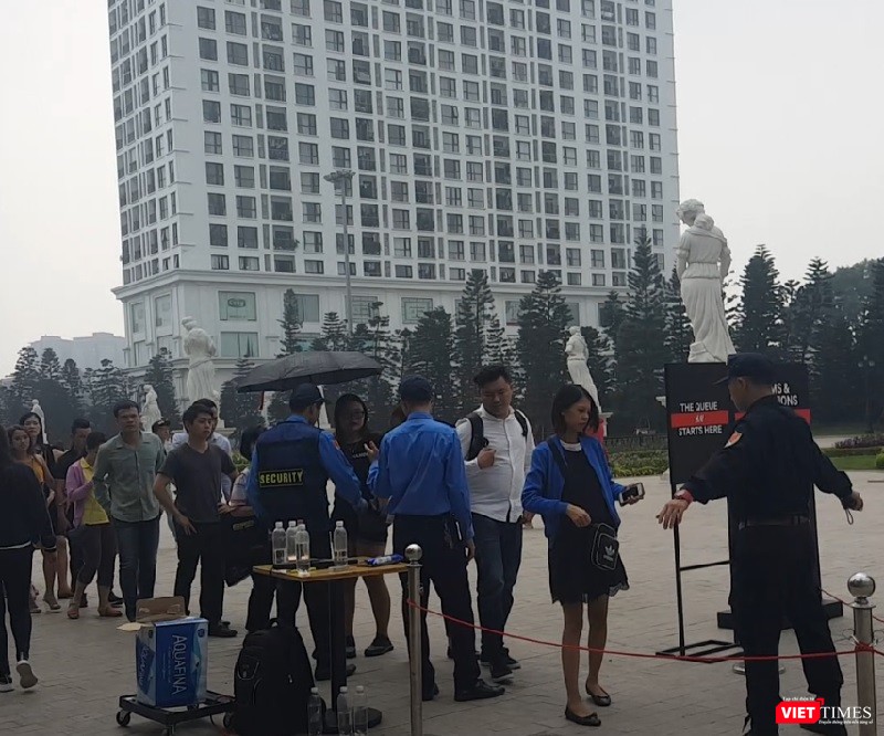 Số lượng khách nhiều đến mức các bảo vệ phải dăng dải phân cách để tạo các lôi đi, tránh chen lấn.