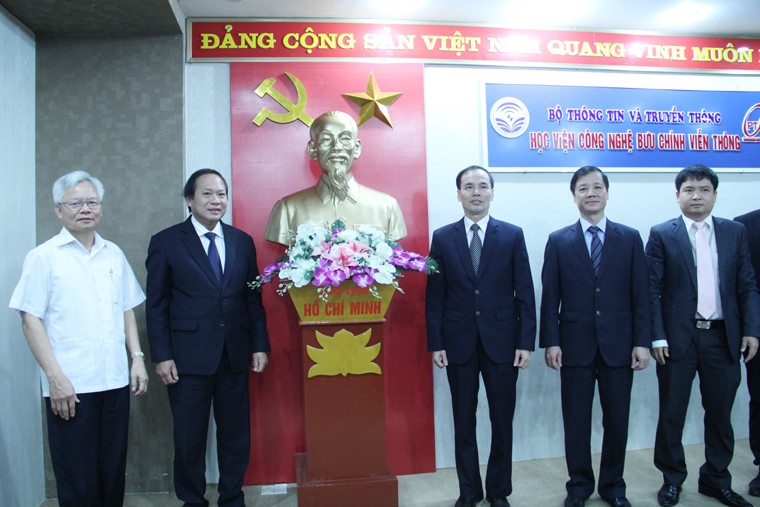 Bộ trưởng Bộ TT&TT Trương Minh Tuấn trao tặng bức tượng Bác Hồ cho lãnh đạo Học viện