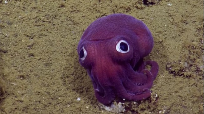 Loài mực baby màu tím này được phát hiện bởi nhóm E/ V Nautilus ngoài khơi bờ biển California. Nó được cho là có liên quan đến họ hàng mực nang và thường được tìm thấy ở Thái Bình Dương.