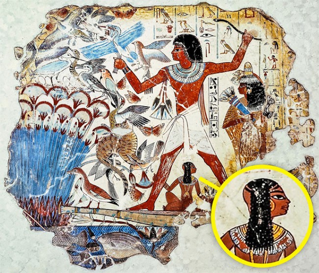 Trên đây là bức bích họa mô tả Nebamun, vợ của ông và một trong ba cô con gái của họ. Một số người tin rằng trẻ con để kiểu tóc này sẽ không có chấy, nhưng nó là cũng có thể có mục đích thiêng liêng hơn.