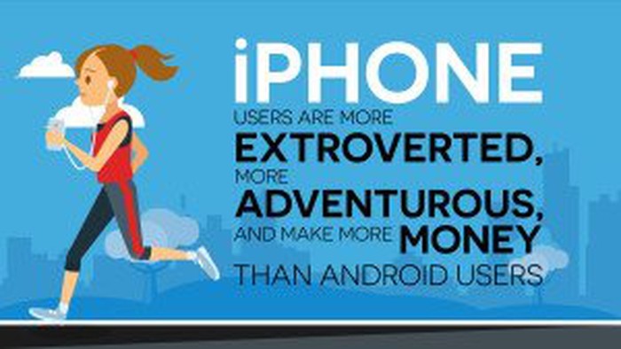 Theo khảo sát mới nhất của Slickdeals dựa trên 1.000 chủ sở hữu iPhone và 1.000 chủ sở hữu Android, thì người dùng iPhone nói chung vui vẻ, hướng ngoại, mạo hiểm và kiếm nhiều tiền hơn.