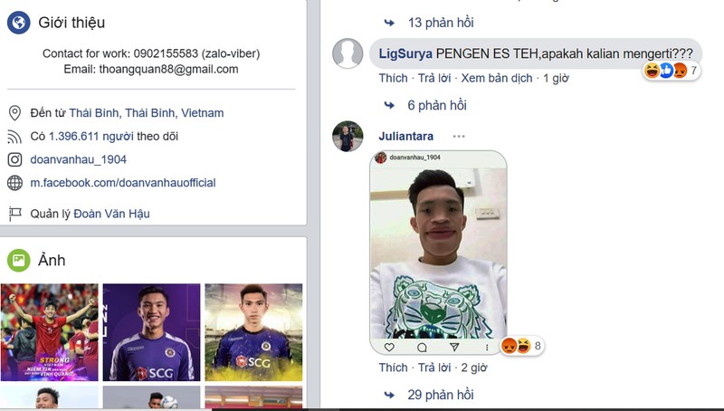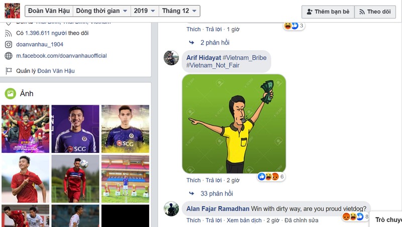Ngay sau khi trận đấu giữa U22 Việt Nam và U22 Indonesia kết thúc, rất nhiều cổ động viên Indonesia đã vào fanpage của Văn Hậu để công kích cầu thủ này. Chúng ta đều biết Đoàn Văn Hậu đã có một trận thi đấu xuất sắc khi vô hiệu hóa toàn bộ các đường tấn công bên hành lang cánh phải của U22 Indonesia. Văn Hậu cũng đã ghi được 2 bàn thắng vào lưới Indonesia trong chiến thắng 3-0 của U22 Việt Nam. Nhưng cũng chính Văn Hậu là người đã gây ra chấn thương khiến đội trưởng Evan Dimas của Indonesia không thể thi đấu tiếp. Đây chính là nguồn cơn khiến cổ động viên Indonesia giận dữ bên cạnh nỗi bực dọc vì thua trận.