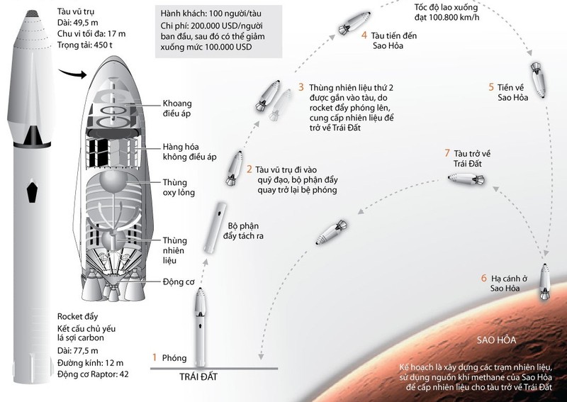 Tập đoàn thám hiểm công nghệ không gian Space X đã công bố các kế hoạch đầy tham vọng, theo đó thiết lập một thành phố trên Sao Hỏa và thực hiện các chuyến bay đưa người lên Hành tinh Đỏ trên những tàu vũ trụ khổng lổ.