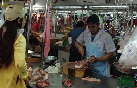 Bảng hiệu chỉ dẫn rõ thịt heo VietGAP giúp người tiêu dùng yên tâm hơn khi chọn mua đúng thực phẩm được chứng nhận của cơ quan quản lý. Ảnh: TÚ UYÊN