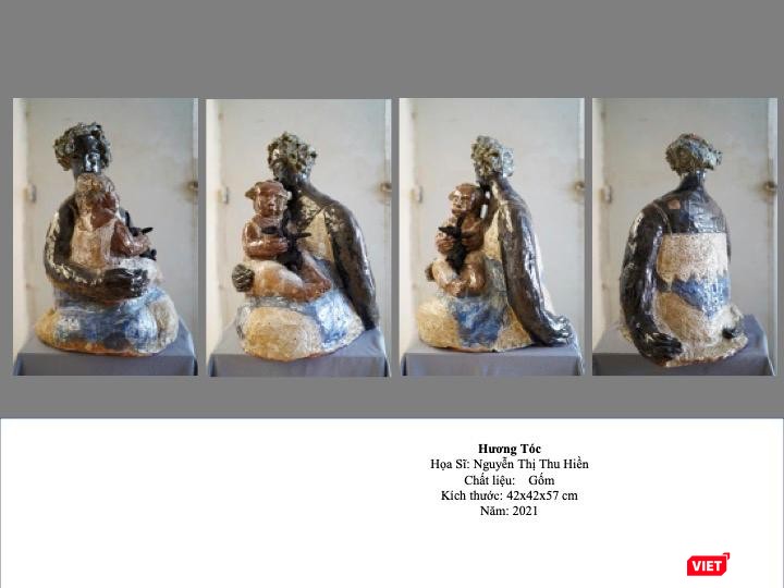 Ở lần triển lãm “Nắng nghiêng lưng trời” lần này, Thu Hiền trưng bày 28 tác phẩm gốm phủ men và gốm phủ sơn mài, 29 tượng trong đó có một tượng sơn mài, 1 tranh sơn mài, 13 tranh lụa, 27 tranh arcrylic trên giấy dó bồi toan…