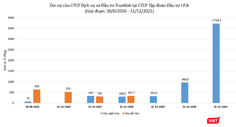 Tính đến ngày 31/12/2021, dư nợ của Trustlink được IPA Group ghi nhận đã lên tới 3.728,3 tỉ đồng, chiếm tới 44,1% tổng tài sản và cao gấp 3,8 lần so với cuối 2020.