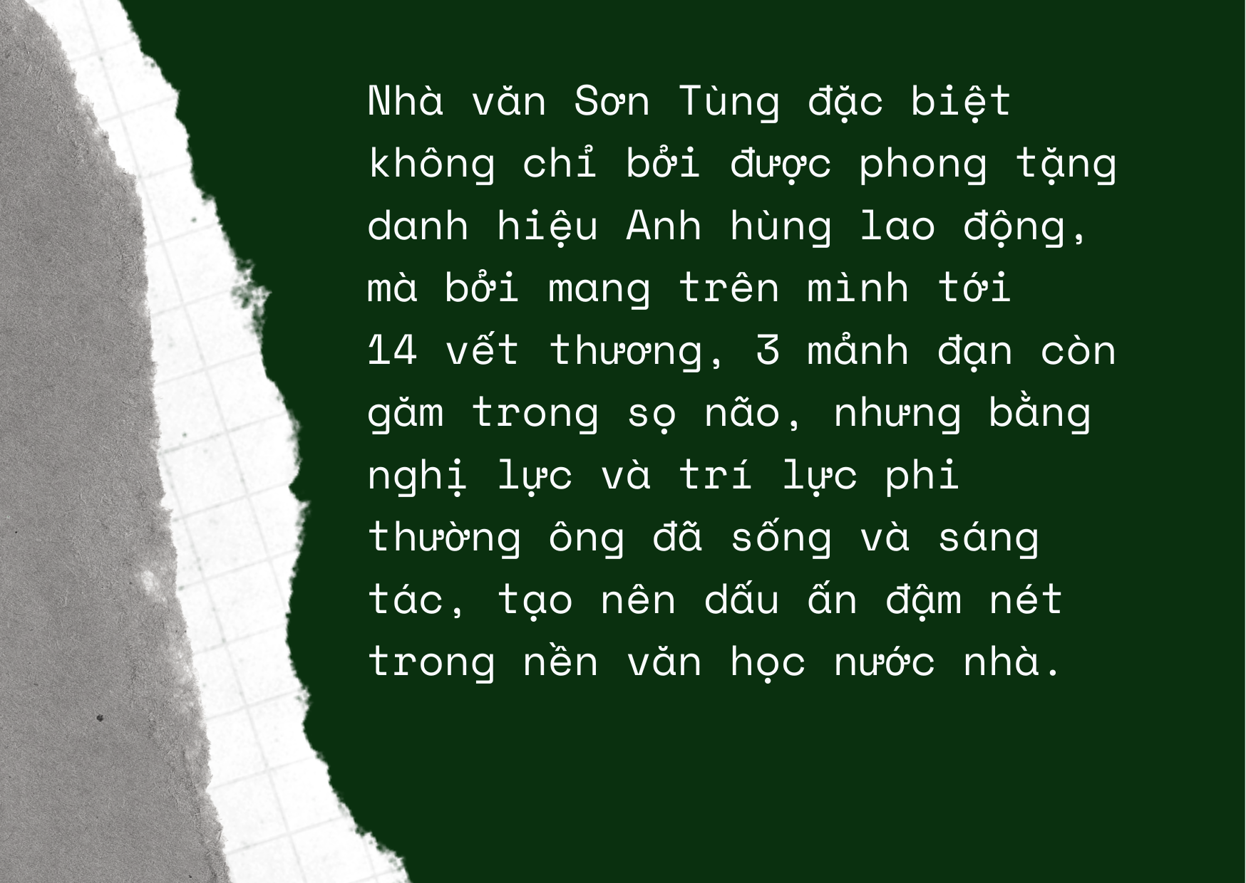 Lần cuối tôi đến thăm ông là vào một sáng đầu xuân cách đây chừng 2 năm, trời Hà Nội rét buốt. Nhà văn Sơn Tùng ở con ngõ nhỏ của khu tập thể Văn Chương cũ kỹ của Hà Nội. Ông nằm bất động trên chiếc giường cá nhân chật hẹp. Mặc dù không nói được nhưng ông vẫn nhận ra khách tới thăm.