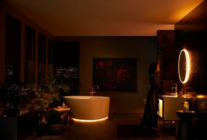 Ngoài nhà vệ sinh thông minh Numi 2.0, Kohler cũng mang đến CES 2019 bộ đèn chiếu sáng thông minh trong nhà tắm có tích hợp điều khiển giọng nói Veil Lighted Bathroom Collection. Người dùng có thể kết nối thông qua ứng dụng Kohler Konnect và điều khiển đèn chiếu sáng bằng giọng nói với Alexa hoặc Google Assistant. Bộ chiếu sáng cũng có cảm biến chuyển động để xác định vị trí của người dùng và chiếu sáng phù hợp với nhu cầu sử dụng.