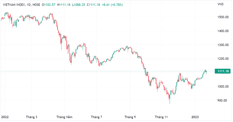 Kết phiên giao dịch, VN-Index tăng 8,61 điểm (+0,78%) lên 1.111,18 điểm. Thanh khoản trên sàn HOSE giảm nhẹ so với phiên hôm trước với giá trị giao dịch khớp lệnh đạt 11.800 tỉ đồng, song vẫn ở mức cao so với trung bình 10 phiên.