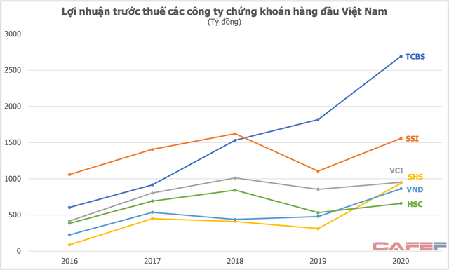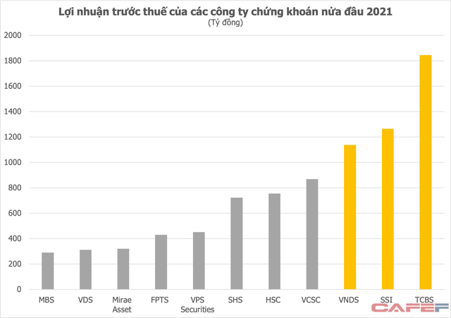Có tới 3 công ty chứng khoán lãi trước thuế trên 1.000 tỷ đồng trong nửa năm, hai trong số đó chạm mức vốn hóa tỷ đô như đã đề cập. VND lãi trước thuế 1.136 tỷ đồng; SSI lãi trước thuế 1.264 tỷ đồng. Nhưng cả hai vẫn đành chịu thua TCBS, với mức lợi nhuận trước thuế lên tới 1.844 tỷ đồng.