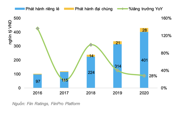 Cũng cần lưu ý rằng, phần lớn trái phiếu doanh nghiệp của Việt Nam được phát hành riêng lẻ, lượng phát hành đại chúng chỉ chiếm tỷ lệ nhỏ, xấp xỉ 6%.