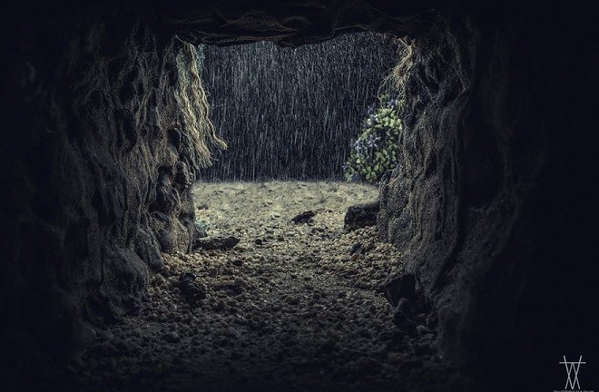 Nước được phun từ bình xịt qua một màng lọc để tạo mưa.