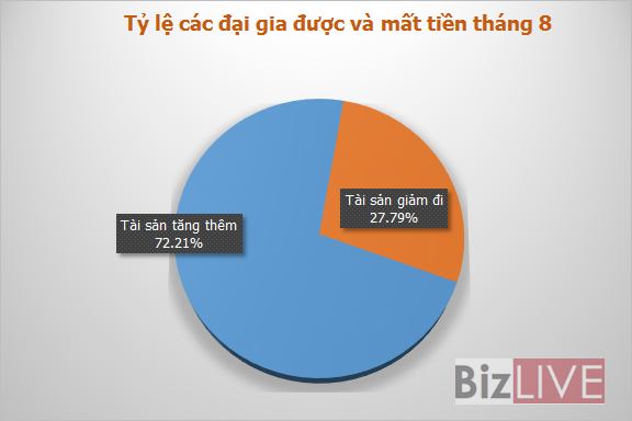 Theo thống kê gần 500 người giàu nhất Việt Nam, có tới 72% người chứng kiến giá trị tài sản của họ suy giảm đi trong tháng 8/2015.