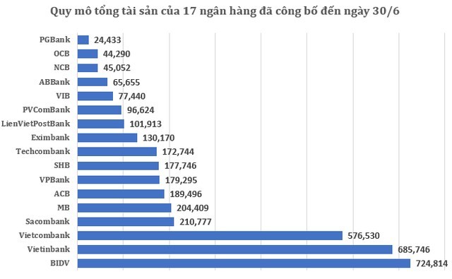 Trong top ngân hàng thương mại cổ phần Nhà nước, duy nhất trường hợp của Ngân hàng TMCP Ngoại thương (Vietcombank) có tổng tài sản giảm nhẹ 0,08%. Trong khi đó, Ngân hàng TMCP Đầu tư và phát triển có tổng tài sản tăng 11,45% lên 724.814 tỷ đồng, do nhận sáp nhập từ Ngân hàng MHB. Đây cũng là ngân hàng đứng đầu về quy mô tổng tài sản trong hệ thống ngân hàng Việt Nam hiện nay.