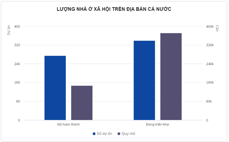 Theo báo cáo của Bộ Xây dựng, trên địa bàn cả nước đã hoàn thành 275 dự án nhà ở xã hội, quy mô xây dựng khoảng hơn 147.000 căn; đang tiếp tục triển khai 339 dự án, với quy mô xây dựng khoảng 371.500 căn.
