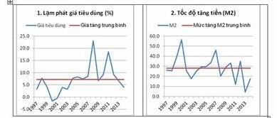 Thời kỳ 2006-2014, GDP giảm hẳn xuống, đạt dưới mức trung bình 7% tính cho cả khoảng thời gian 1997-2014. Chính sách tiền tệ vẫn trồi trụt từ 2011 đến nay, lúc giảm tốc, tăng 12% (2011), lúc tăng tốc 24% (2012), sau đó lại xuống 4% (2013), và năm 2014 là 17%. Nói chung, không thể dùng chính sách in tiền để phát triển mà cần một chính sách tiền tệ ổn định, bảo đảm mức tăng phát hành tiền và tín dụng trong khoảng 10-15% một năm để ổn định tình hình.