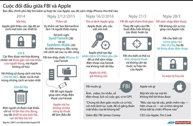 FBI cho biết họ đã mở khóa chiếc iPhone 5c nhờ vào sự trợ giúp của một công ty bên thứ ba và không tiết lộ tên công ty này